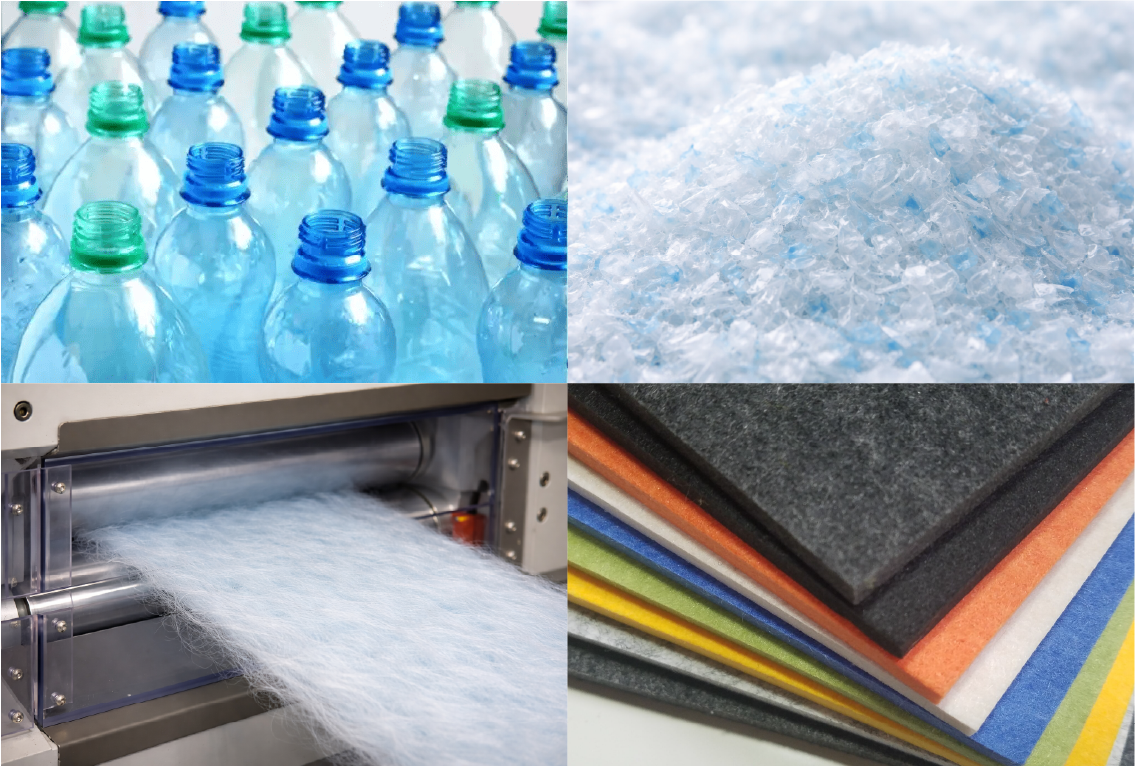 Instead of being thrown away, single-use bottles are broken down and turned into felt sheets that help reduce noise and improve spaces.