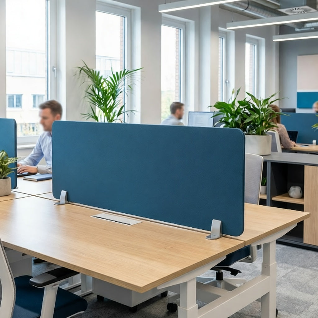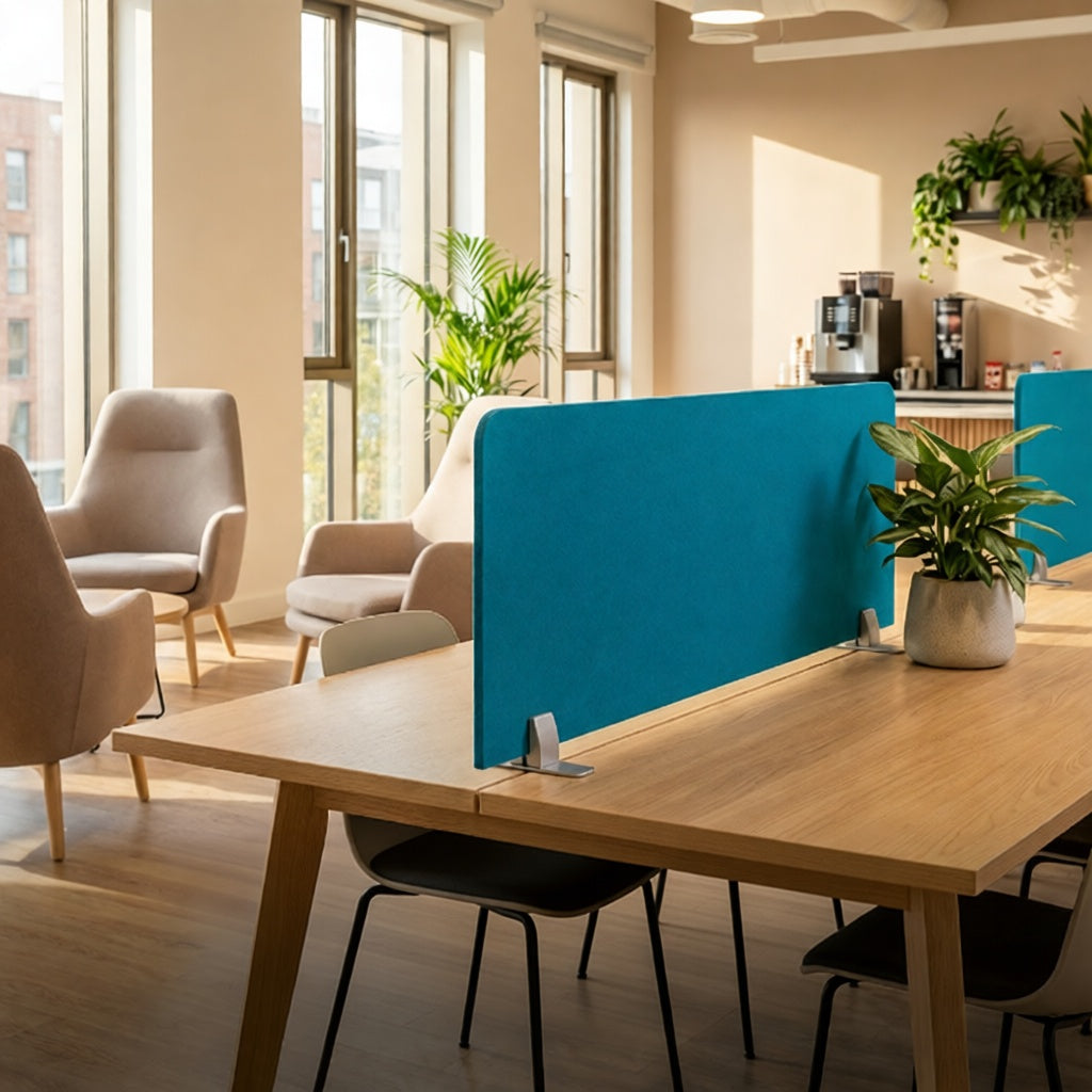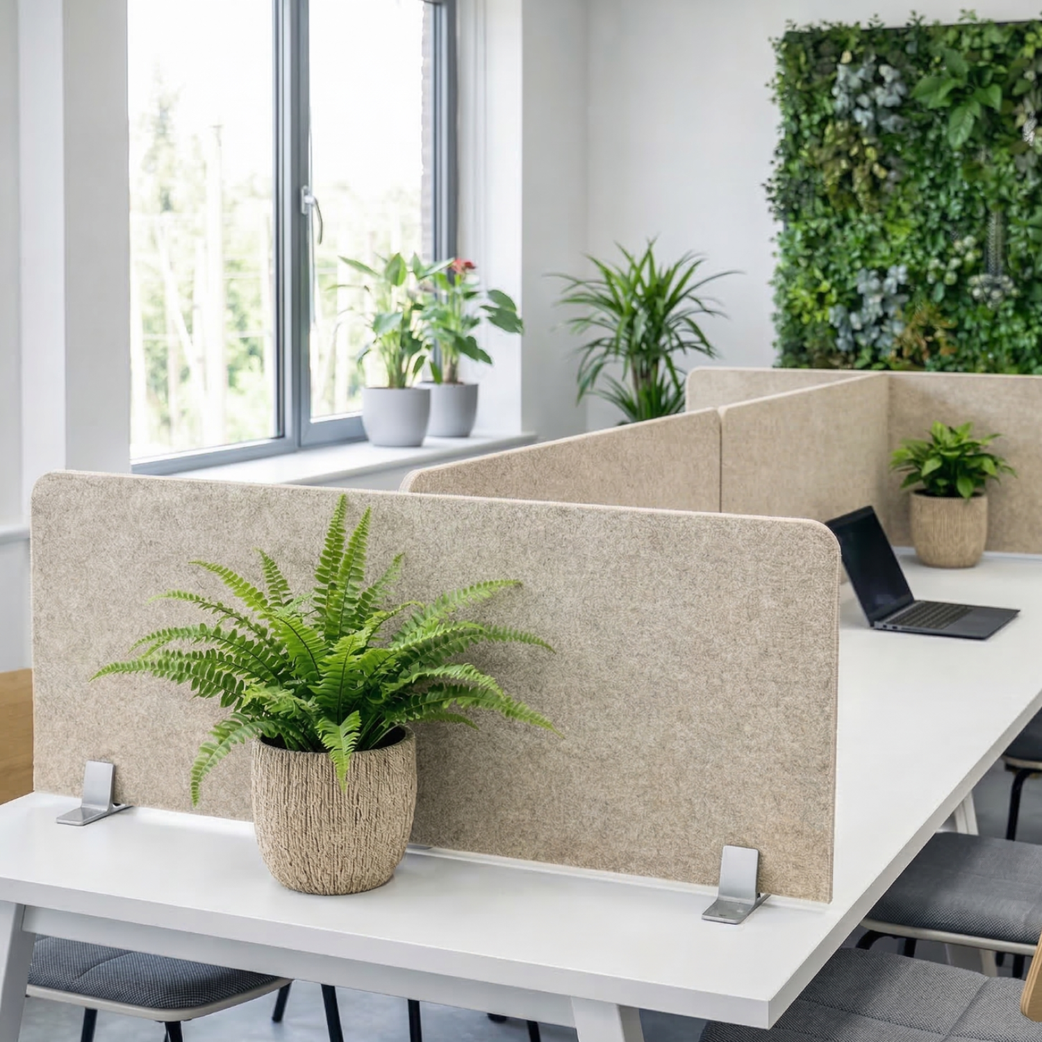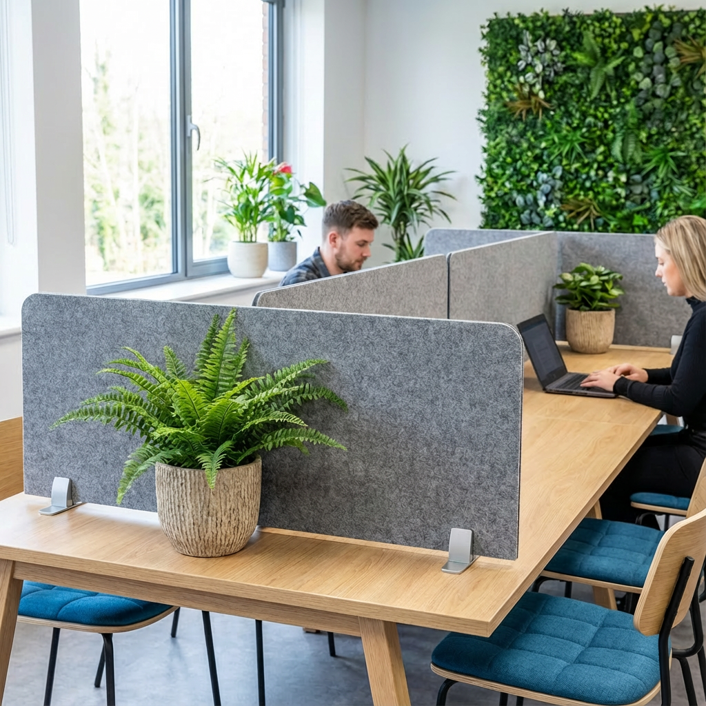 Keep focused and cut out distractions with the 24mm Acoustic Desk Screen from Felted. These screens sit on your desk and help to reduce noise in busy office areas while giving you a bit more privacy. Made from PET felt in the UK, the 24mm thickness means they hold more rigidly than thinner 9mm or 12mm screens.
